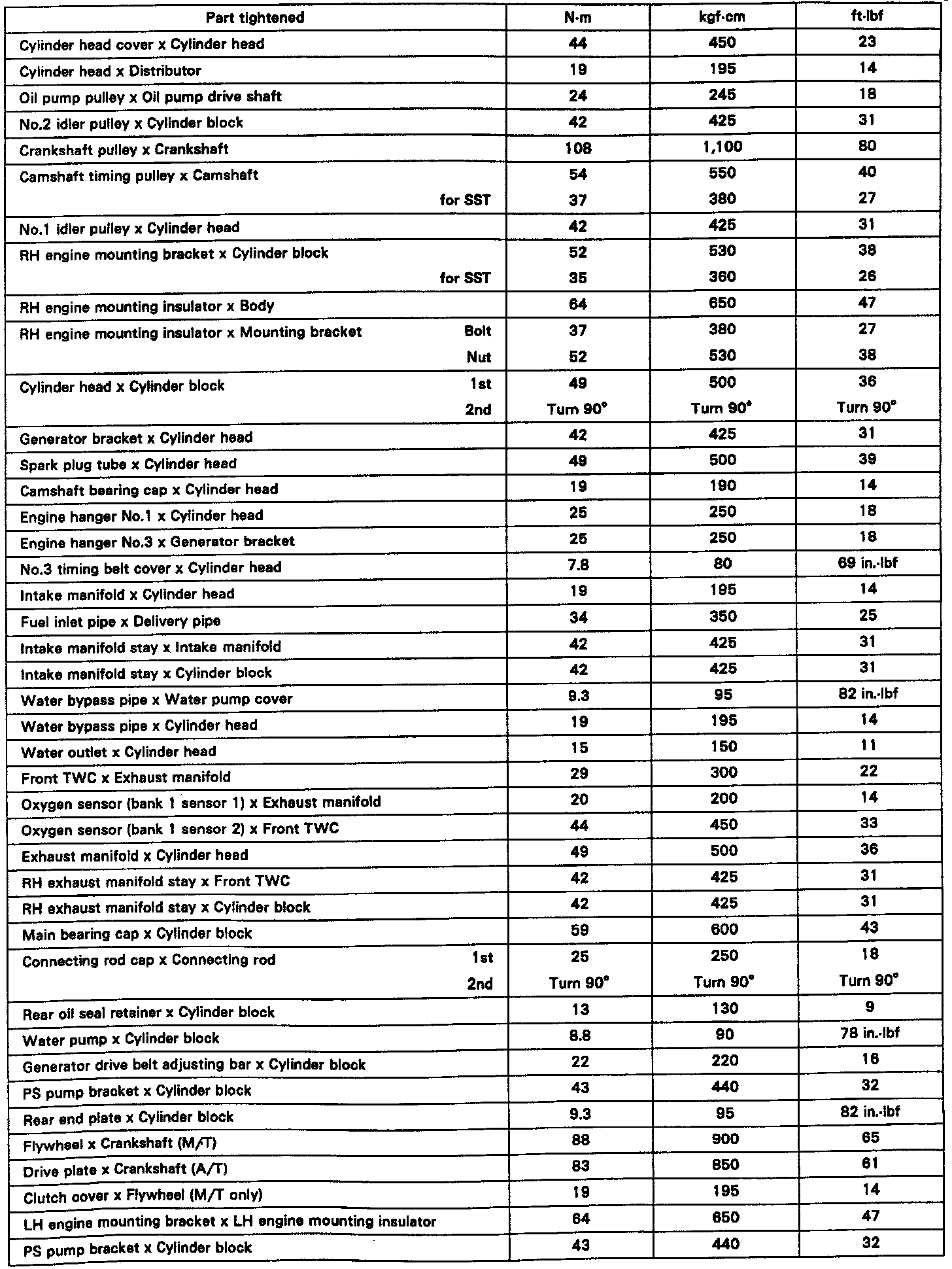 TORQUE CHARTTORQUE SEQUENCES