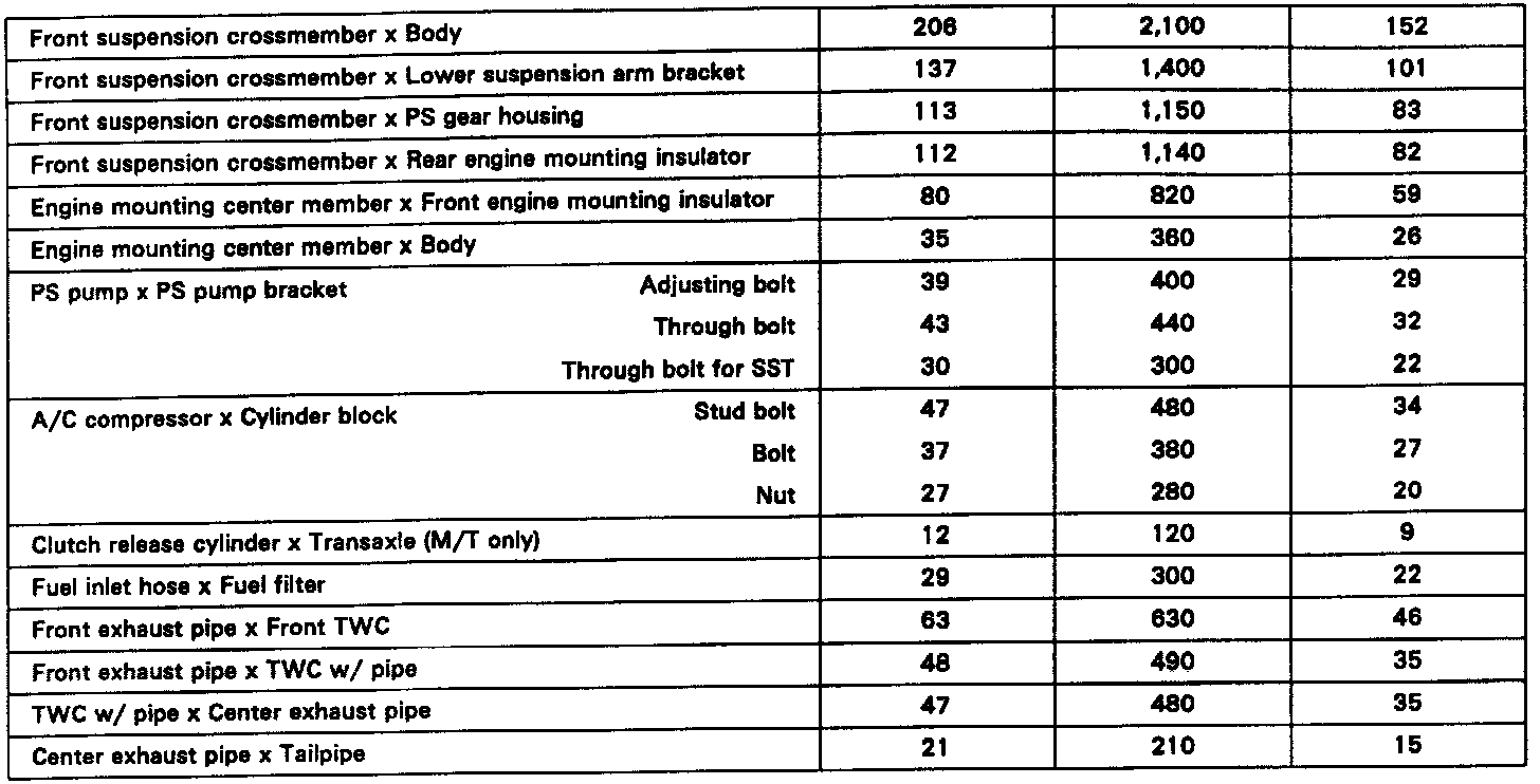 General Torque Specifications