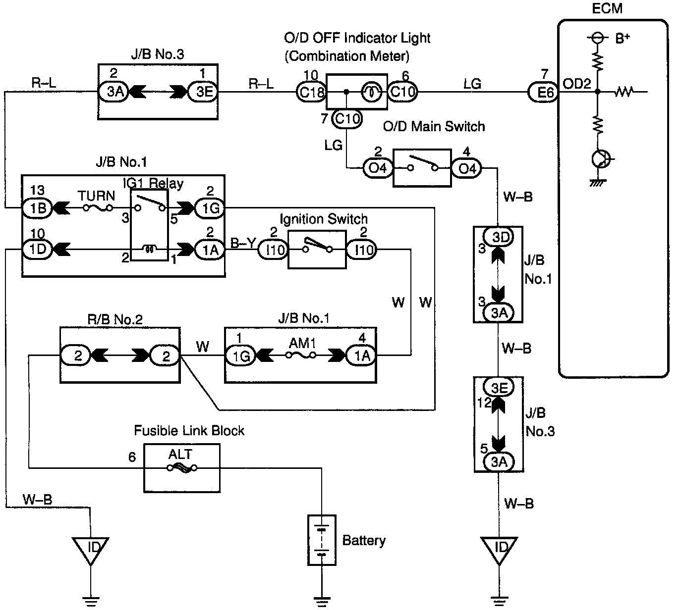 O/D Main Switch & O/D Off Indicator Light Circuit