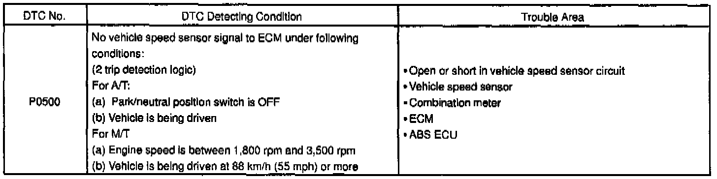 DTC P0500 Vehicle Speed Sensor Malfunction