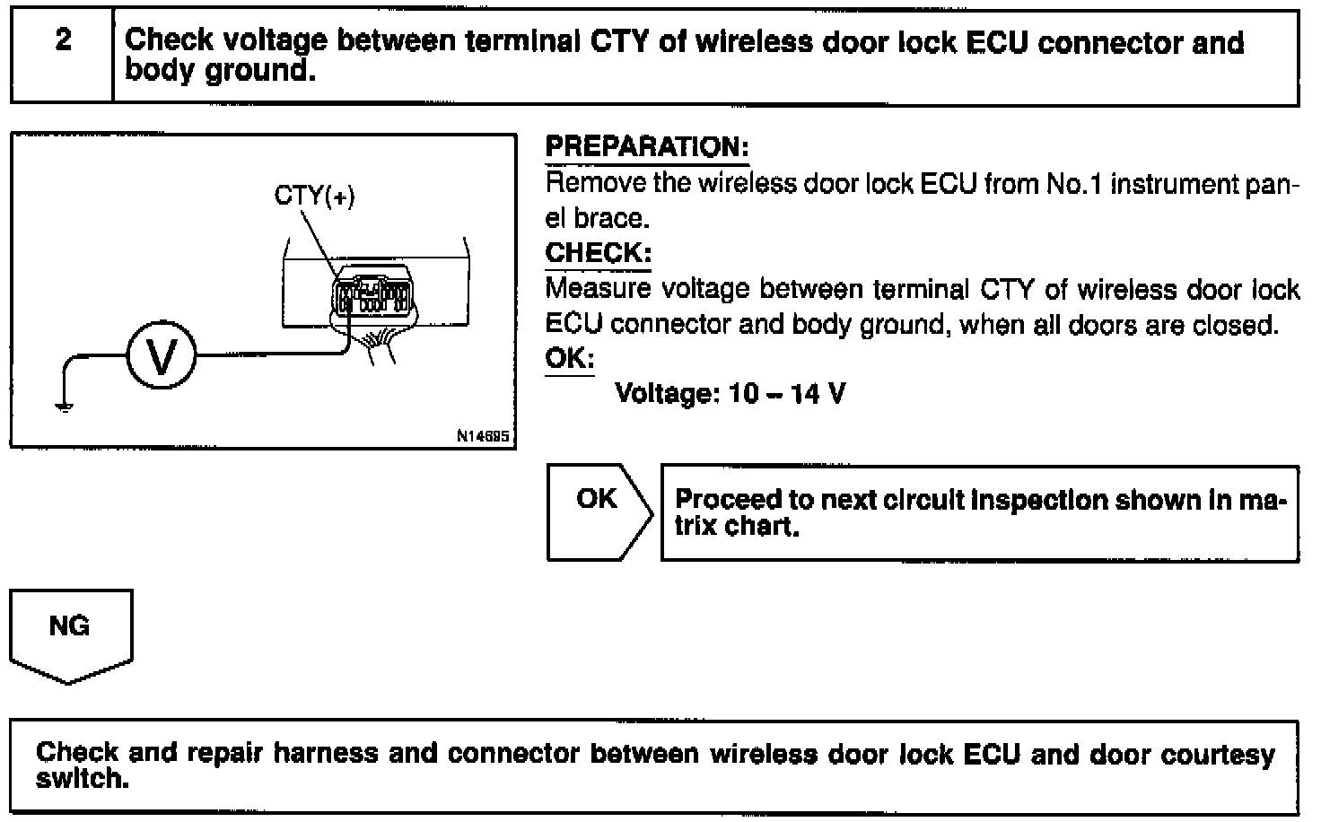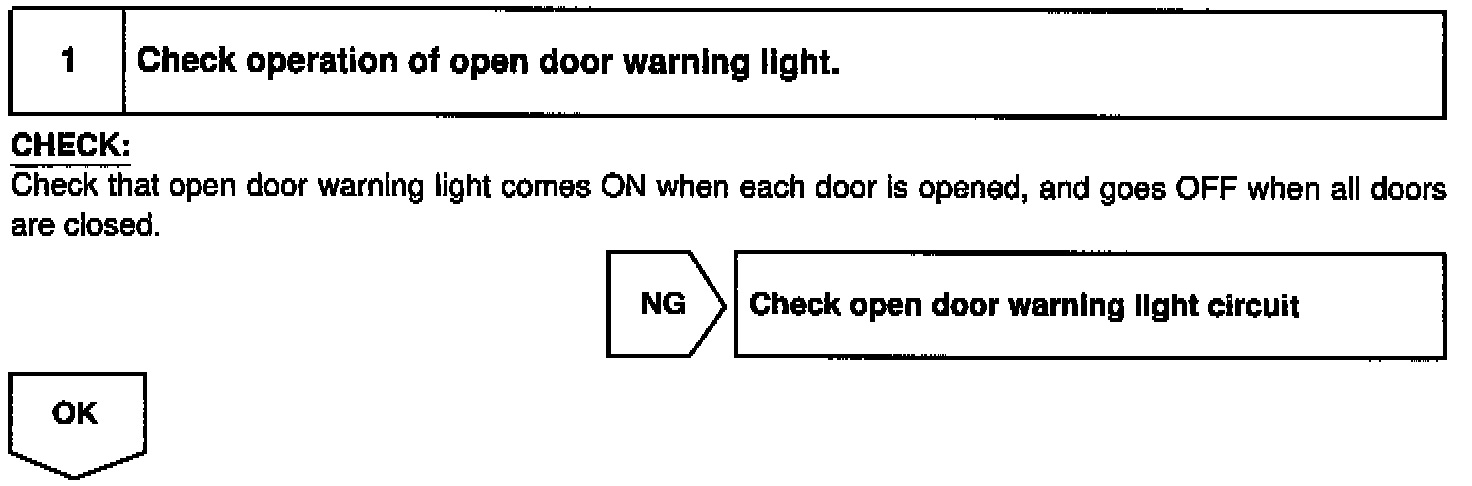 The door courtesy switch comes ON when the door is opened and goes OFF when door is closed. Furthermore. the door courtesy switch circuit has terminal +B connected inside the theft deterrent ECU. Battery positive voltage is applied to terminal DSWD of the theft deterrent ECU when all doors are closed, i.e., when the door courtesy switches of all doors are OFF.