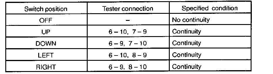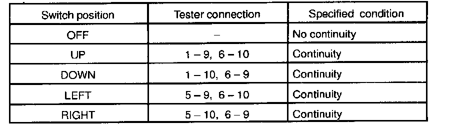 INSPECT MIRROR CONTROL SWITCH CONTINUITY