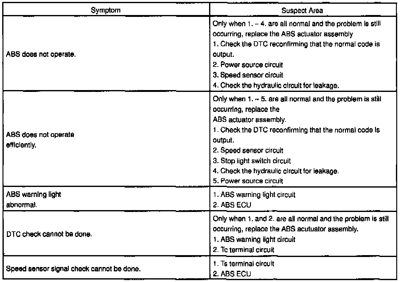 If a normal code is displayed during the DTC check but the problem still occurs, check the circuits for each problem symptom in the order given in the table above.