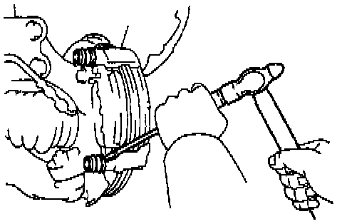 b. Remove the hub nuts and the disc. Reinstall the disc 1/5 of a turn round from its original position on the hub. Install and torque the hub nuts.