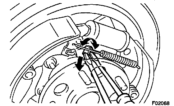 b. Using another screwdriver, reduce the brake shoe adjuster by turning the adjuster.