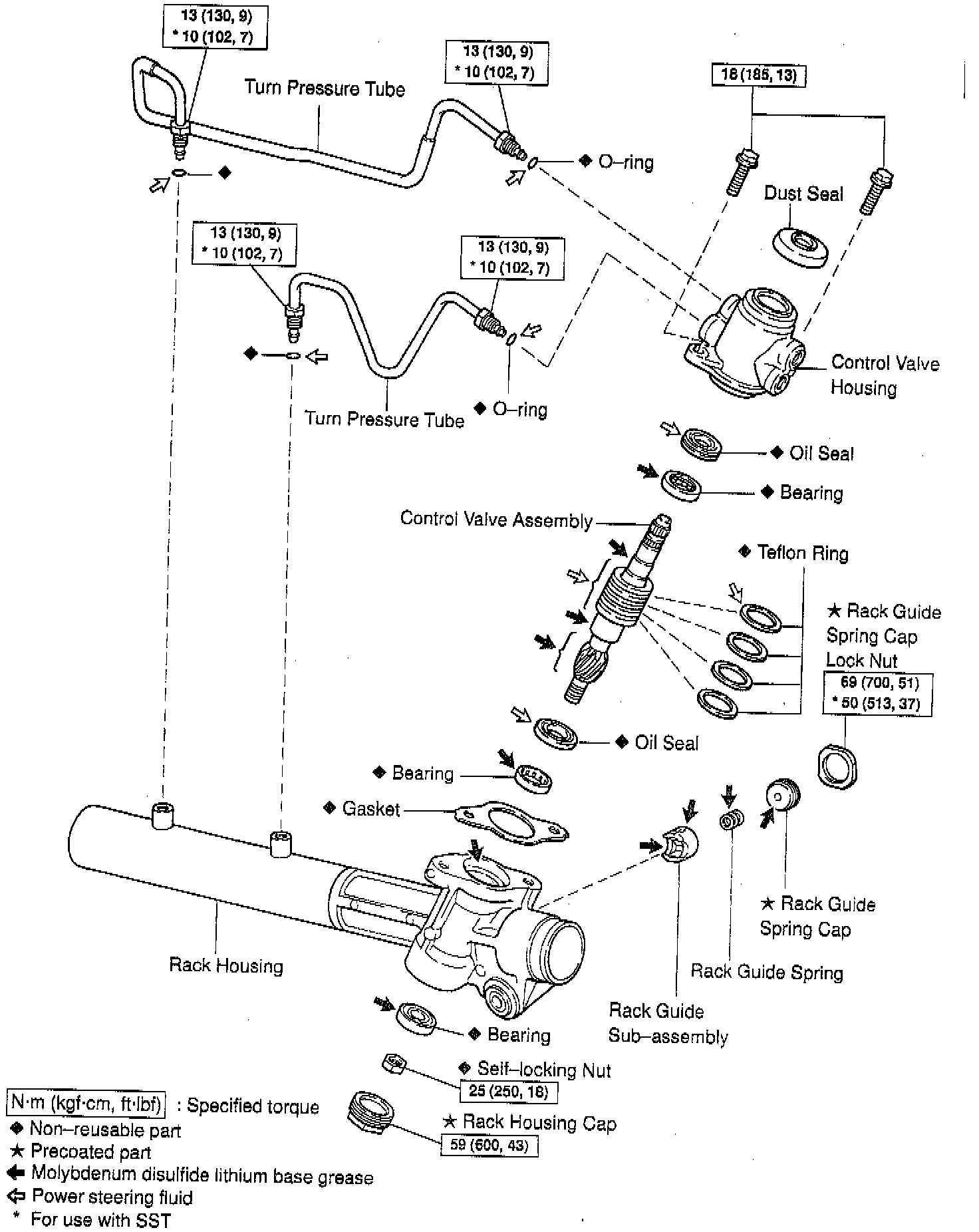 Exploded View Of Power Steering Gear (Part 1 Of 2):