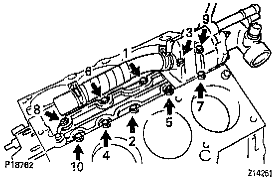 Uniformly tighten the bolts and nuts in several passes, in the sequence shown.