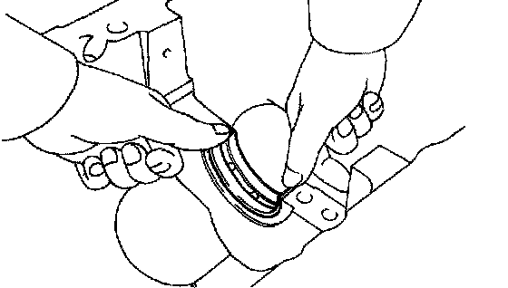 e. Using a small screwdriver, install a new snap ring on the other end of the piston pin hole.