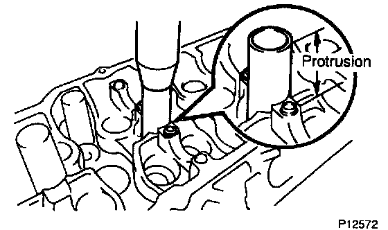 NOTICE: Avoid pressing a new spark plug tube in too far by measuring the amount of the protrusion while pressing.