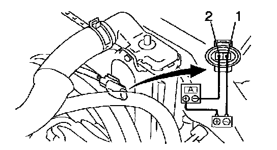 b. Connect battery and ammeter to the fan connector, as shown in the illustration.