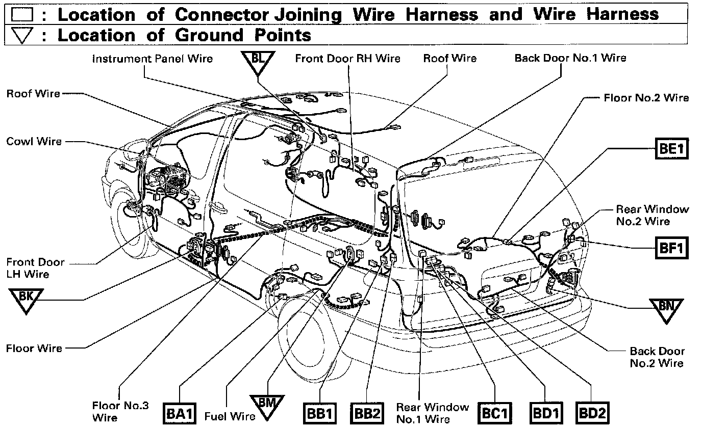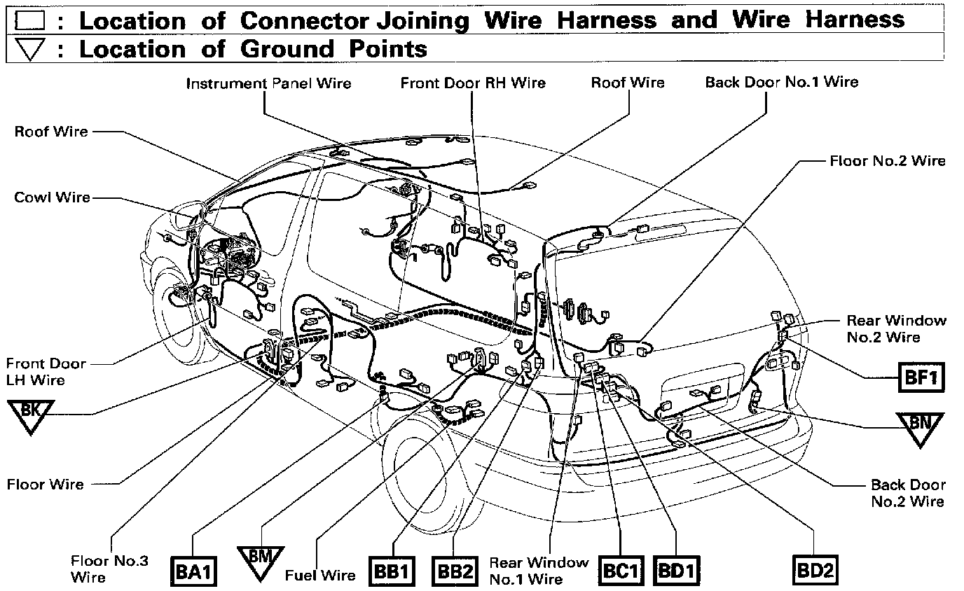 Location Of Connector Joining Wire Harness And Wire Harness Ground Points (Fig 40):