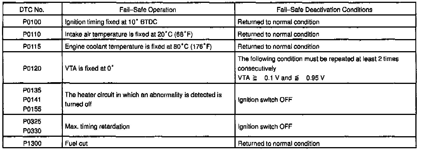 If any of the above codes are recorded, the ECM enters fail-safe mode.