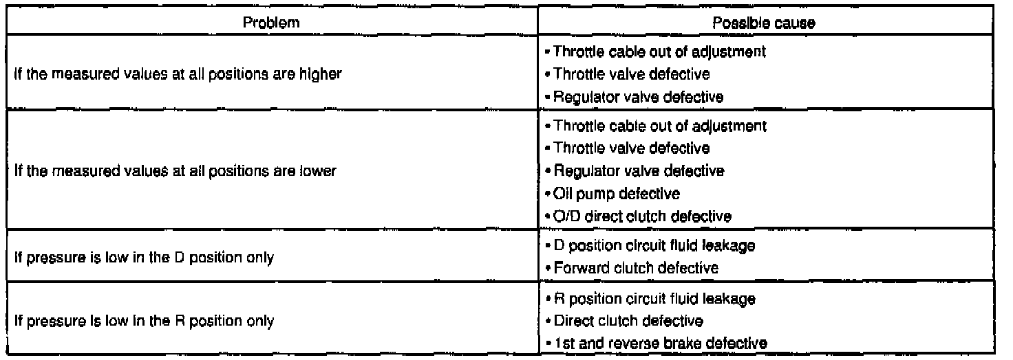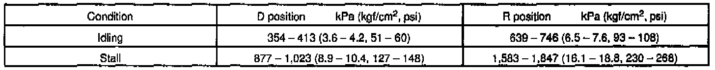 (8) Depress the accelerator pedal all the way down. Quickly read the highest line pressure when engine speed reaches stall speed.