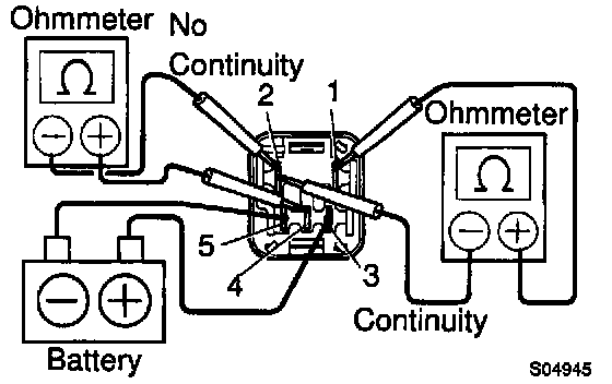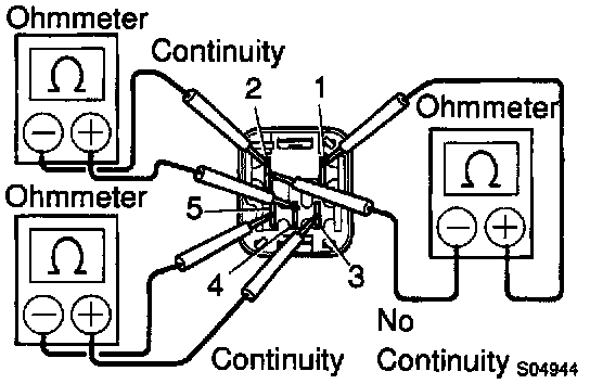 b. Using an ohmmeter, check that there is no continuity between terminals 2 and 4.