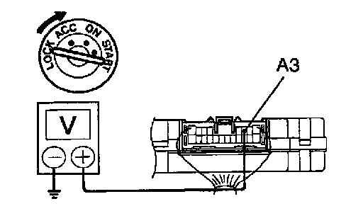 a. Connect the positive (+) lead from the voltmeter to terminal A3 and the negative (-) lead to body ground.