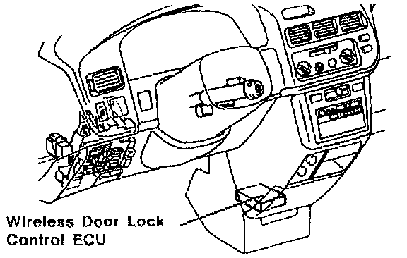 1. With the key OUT of the ignition switch, locate the Wireless Door Lock ECU.