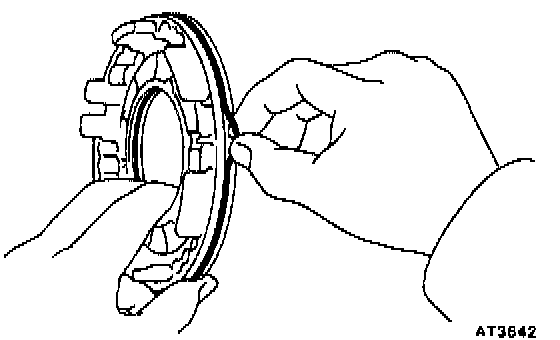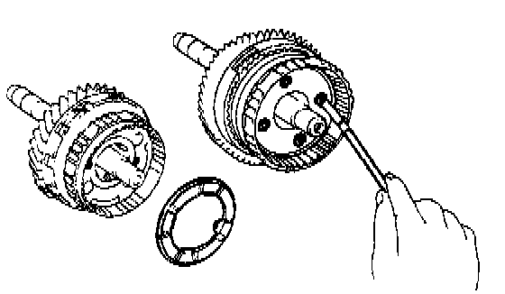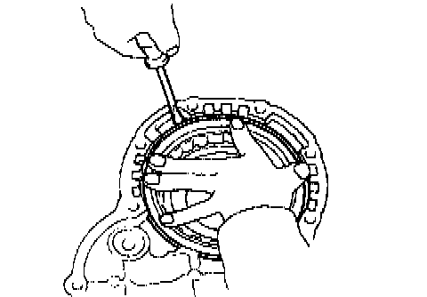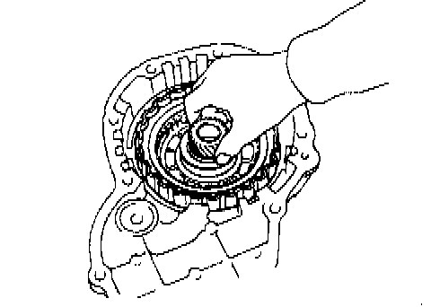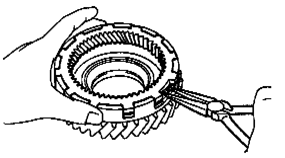 a. While pulling up the ring gear, compress the snap ring with needle-nose pliers and remove it from the groove.