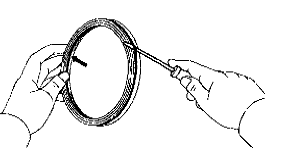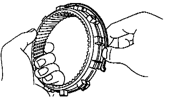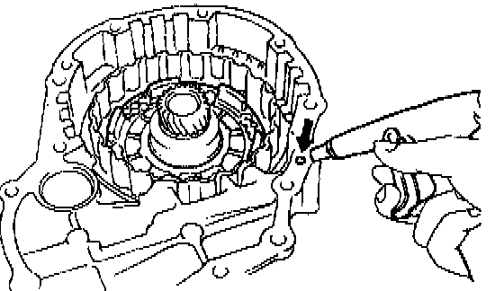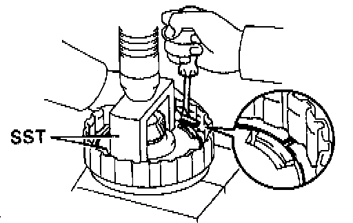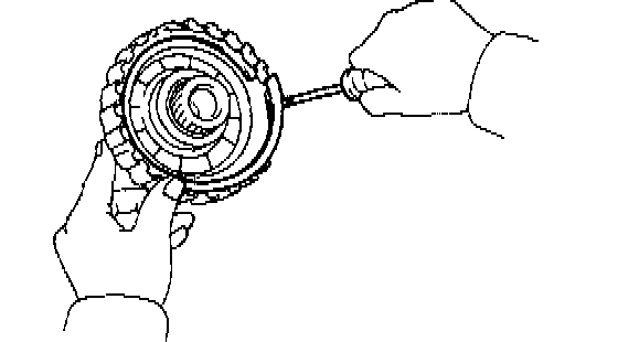 c. Install the snap ring with a screwdriver. Be sure and gap of snap ring is aligned with the groove of the clutch drum.
