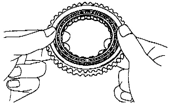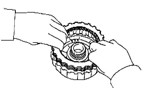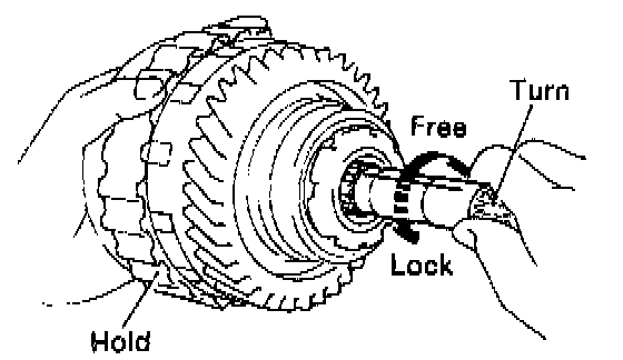 b. Hold the overdrive direct clutch and turn the intermediate shaft. The shaft should turn freely clockwise and should lock counterclockwise.