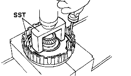 a. Hold the overdrive planetary gear in a vise with soft jaws.