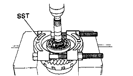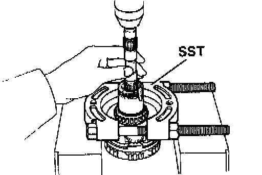Using SST, press out the bearing from the shaft.