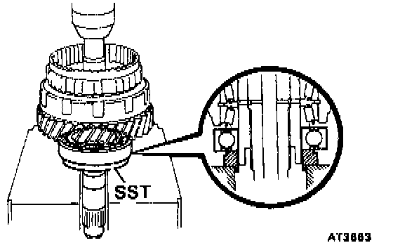 Using SST, press in the two outer races to both sides of the gear.