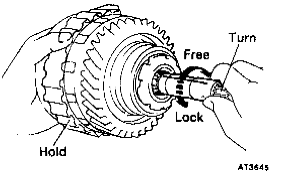 b. Hold the overdrive direct clutch and turn the intermediate shaft. The shaft should turn freely clockwise and should lock counterclockwise.