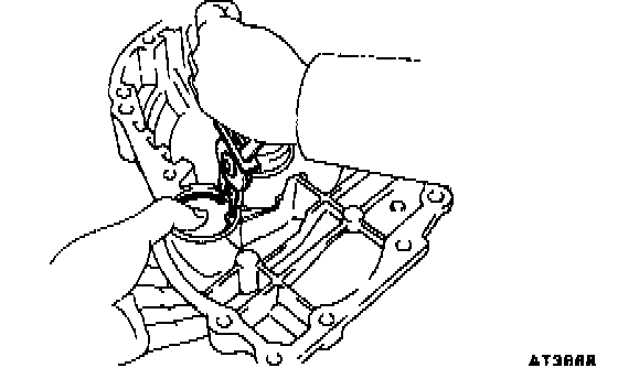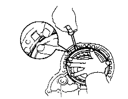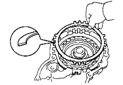 b. While pushing down the ring gear, squeeze the snap ring end with needle-nose pliers, and install it into the groove.