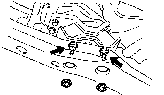 Remove the 2 steering gear assembly mounting bolts and nuts.