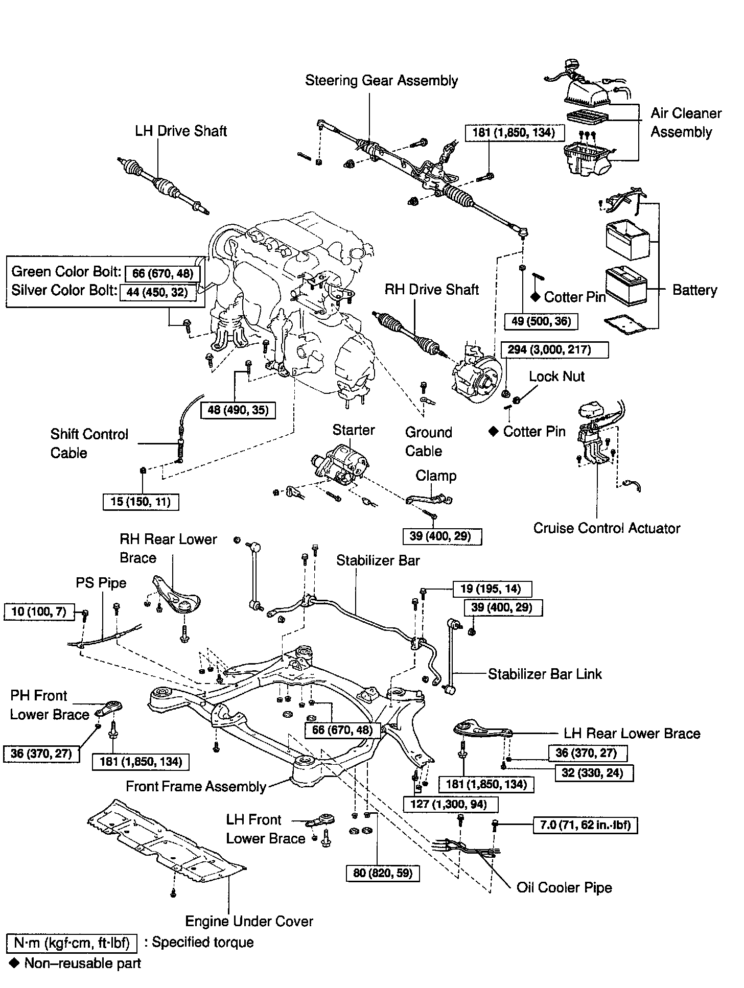 Green color bolt: 66 Nm (670 kgf.cm, 48 ft. lbs.)