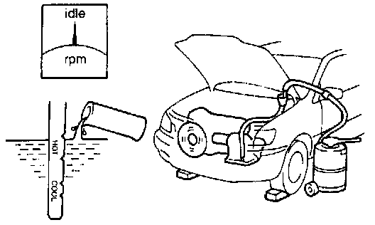 (5) With the engine idling, check the fluid level. Add fluid up to the COOL level on the dipstick.