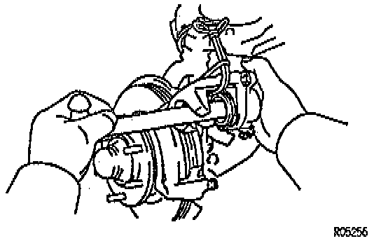 HINT: Do not disconnect the flexible hose from the caliper.