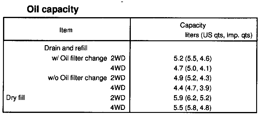 Oil grade: API grade SH Energy-Conserving 11 or SJ, Energy-Conserving or ILSAC multigrade engine oil.