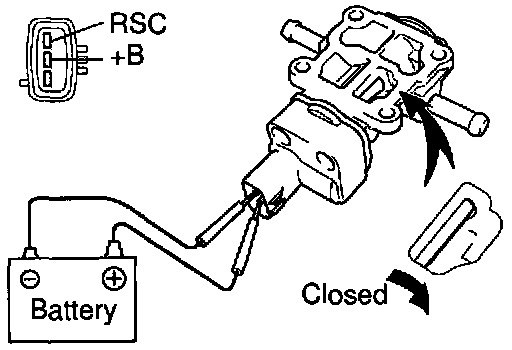(a) Connect the positive (+) lead from the battery to terminal +B and negative (-) lead to terminal RSC, and check that the valve is closed.