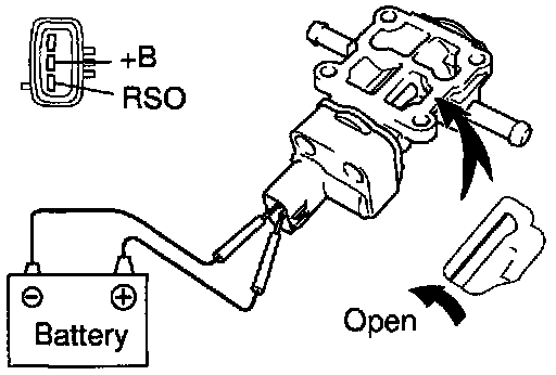 (b) Connect the positive (+) lead from the battery to terminal +B and negative (-) lead to terminal RSO, and check that the valve is open.