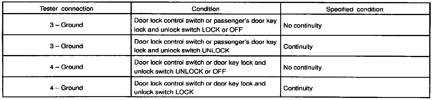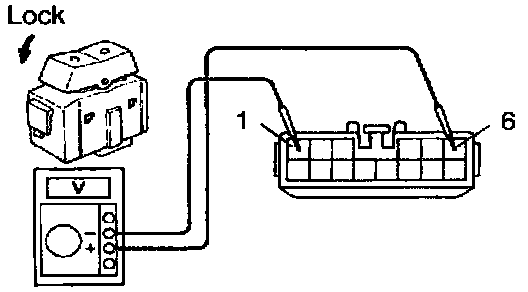e. Set the door lock control switch to LOCK, check that the voltage rises from 0 V to battery positive voltage for approximately 0.2 seconds.
