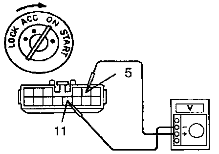 e. Turn the ignition switch ON, check that the meter needle indicate battery positive voltage again.