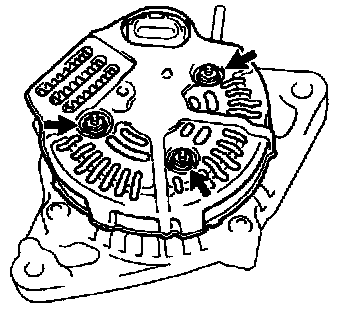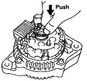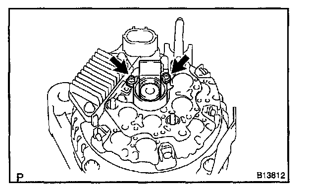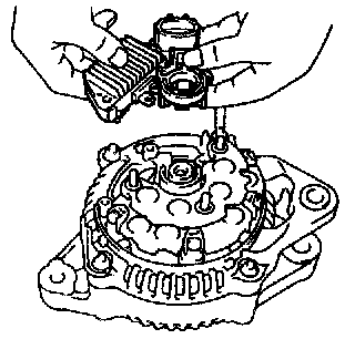 b. Place the voltage regulator together with the brush holder horizontally on the rectifier end frame.