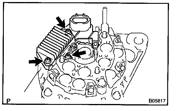 Remove the 3 screws and voltage regulator.