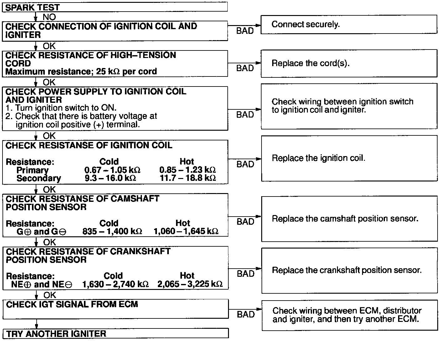 (5) Check it spark occurs while engine is being cranked.