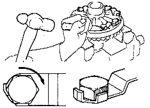 g. Using a drift punch and hammer, stake the five lock plates.