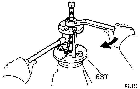 b. Using SST 09950-30010 (09951-03010, 09953-03010, 09954-03010, 09955-03030, 09956-03020) install the companion flange.