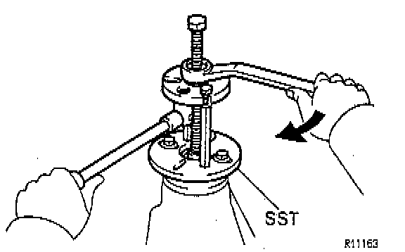 c. Using SST 09330-00021 or equivalent to hold the flange, tighten the nut.