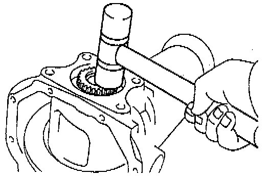 b. Tap on the ring gear with a plastic hammer so that the washer fit to the bearing.