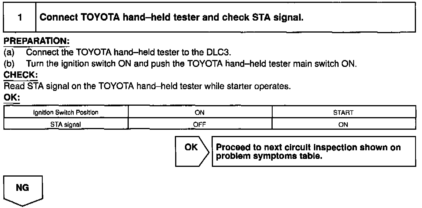 HINT: This diagnostic chart is based on the premise that the engine is cranked normally. If the engine is not cranked, proceed to the problem symptoms table.
