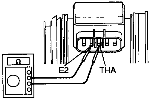 Using an ohmmeter, measure the resistance between terminals THA and E2.