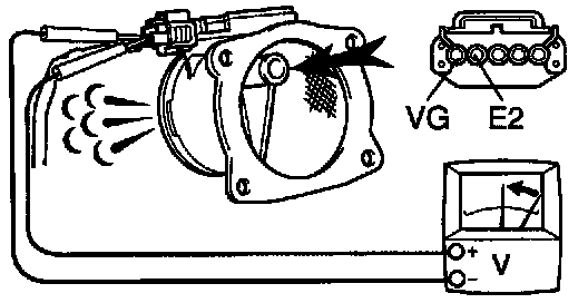 (e) Blow air into the MAF meter, and check that the voltage fluctuates.