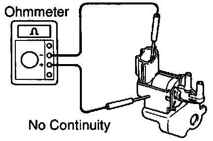 Using an ohmmeter, check that there is no continuity between each terminal and the body.