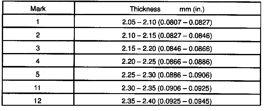 Snap Ring Thickness Chart