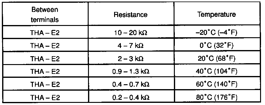Using an ohmmeter, measure the resistance between terminals THA and E2.